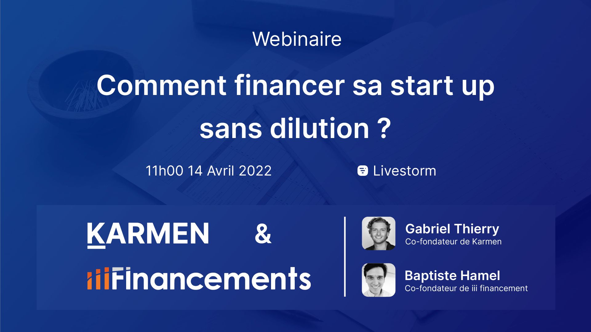 Les réponses à vos questions ce jeudi 14 avril à 11h, Gabriel Thierry co-fondateur de Karmen & Baptiste HAMEL co-fondateur de iii - financements vous présentent les solutions de financement sans dilution.